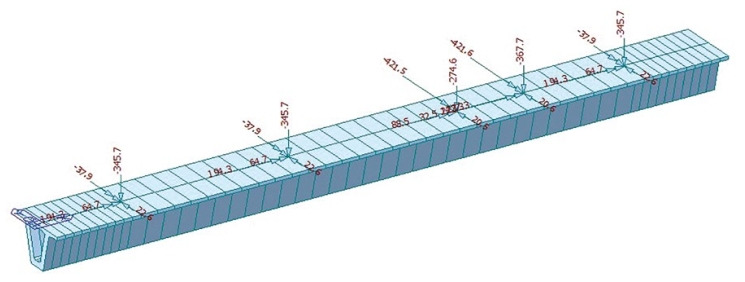 (2)管道支座設計。為滿(mǎn)足管道在施工、運行、維檢修等作業(yè)工況下變形的需要,保證管線(xiàn)橋結構和管道安全,根據管道支座的受力,對管線(xiàn)橋開(kāi)展了上部結構和下部結構受力驗算(圖 2),設計固定支座、滑動(dòng)支座、管道支墩、補償滑動(dòng)支座和固定墩五種類(lèi)型的管道支座,對管道變形進(jìn)行合理限制,進(jìn)而減少管道補償彎受力對管線(xiàn)橋的影響。