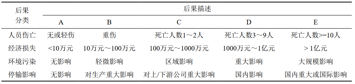 (1)對失效后果五個(gè)等級分為四個(gè)方面進(jìn)行了細化,但對失效可能性等級沒(méi)有進(jìn)一步細化,而實(shí)際風(fēng)險評價(jià)中,管道企業(yè)通常更關(guān)注失效可能性。