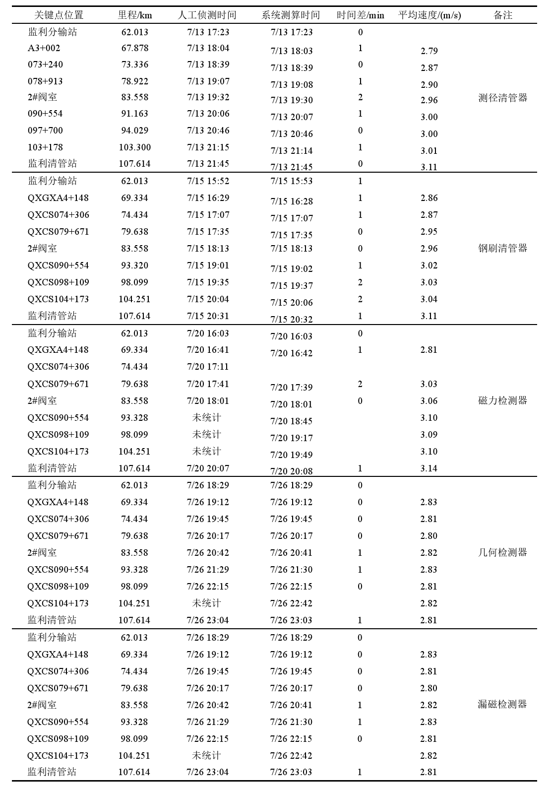 (3)可以精準計劃內檢測過(guò)程中檢測器位置上下游的作業(yè)流程,對于管輸過(guò)程的閥門(mén)開(kāi)閉及啟輸作業(yè)有指導意義,有效提高工作效率。