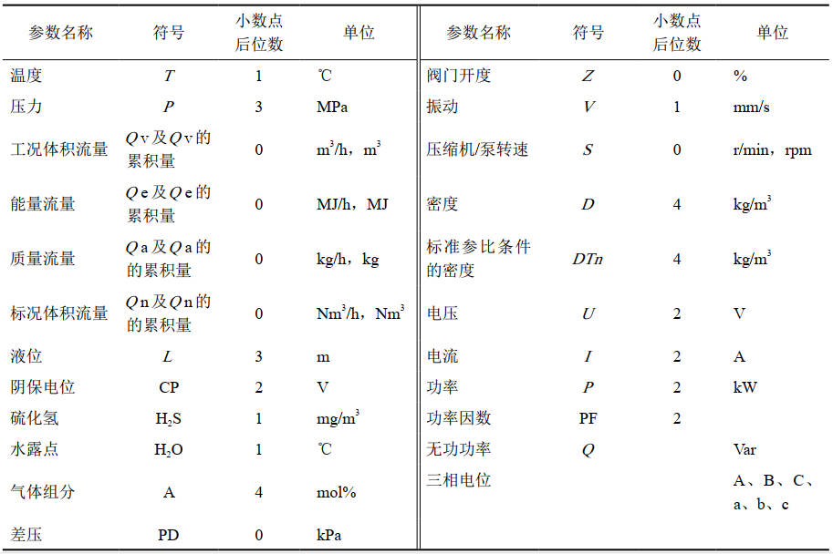(5)計量系統。計量系統報警主要采集數據點(diǎn)包括流量計、色譜分析儀、水露點(diǎn)分析儀、硫化氫分析儀等設備以及能量計量相關(guān)參數。