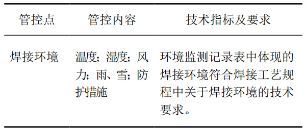 表 5 焊接環(huán)境的質(zhì)量關(guān)鍵點(diǎn)