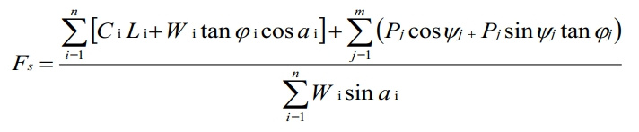 邊坡土體穩定性由抗滑力矩和滑動(dòng)力矩兩個(gè)因素決定,因此土體邊坡的安全系數(FS)可以通過(guò)以下公式計算: