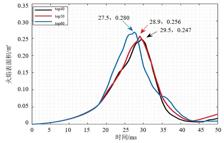 圖 4 火焰面積隨時(shí)間變化規律曲線(xiàn)