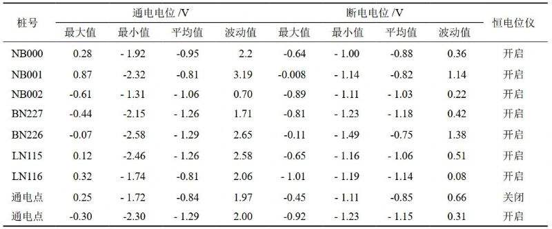 表 1 陰極保護站恒電位儀運行參數