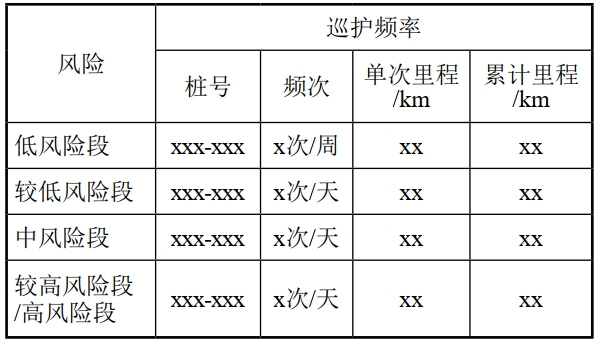 傳統的管道巡護模式多以巡護人員巡護長(cháng)度相同、每天執行均等任務(wù)為主,這樣造成風(fēng)險較小的區段“過(guò)”巡,風(fēng)險相對較大的區段“欠”巡,隱患得不到及時(shí)發(fā)現和消除。差異化巡檢是指根據管道所處地理環(huán)境和區段風(fēng)險等級,確定巡檢周期和頻次,實(shí)現由“線(xiàn)”為單位的固定周期和頻次向以“段”為單位有側重點(diǎn)、動(dòng)態(tài)調整周期和頻次的巡檢模式轉變,最大限度提高風(fēng)險管控效果,降低安全環(huán)保事故發(fā)生概率。