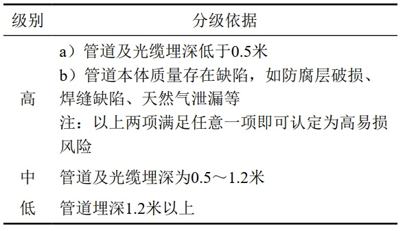表 2 管道易損性定性分級