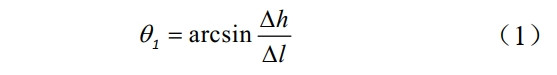 根據NACE SP0206―2006公式,管道傾角θ通常是按照度數或弧度給出的,傾角的正弦值表示管道高程Δh 相對管道長(cháng)度Δι的變化[3],按式(1)計算。用傾角的反正弦值來(lái)表示一定長(cháng)度管道的高程變化。