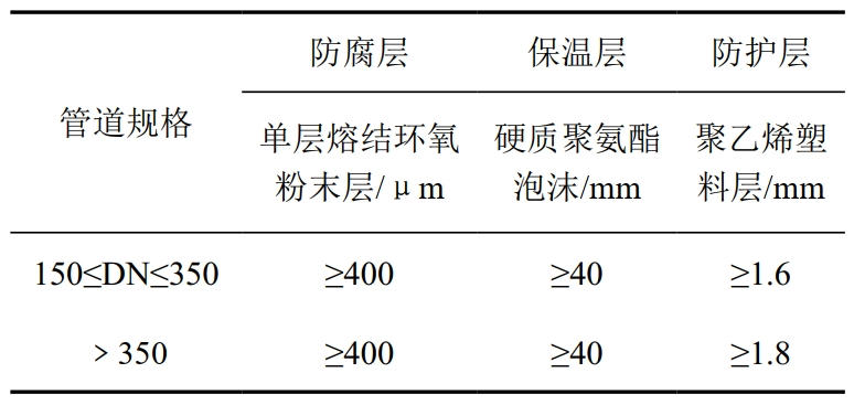 表 2 “管中管法”工藝防腐保溫管結構數據