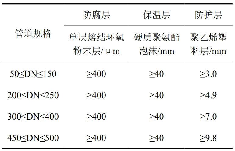 表 1 “一步法”工藝防腐保溫管結構數據