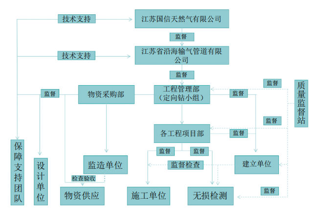 長(cháng)輸管道作為戰略性基礎設施,其建設直接關(guān)系到國家能源安全和社會(huì )經(jīng)濟的發(fā)展。定向鉆穿越施工因對環(huán)境影響小,不會(huì )干擾路基、河床底部結構和條件,施工效率高等優(yōu)勢,在長(cháng)輸管道建設中得到廣泛應用。本文以江蘇沿海輸氣管道定向鉆工程管理為研究對象,通過(guò)構建管理體系,建立管理結構、落實(shí)管理責任、優(yōu)化管理流程、提升管理水平,確保定向鉆工程質(zhì)量和管道本質(zhì)安全,為江蘇省沿海管網(wǎng)建設規劃的順利實(shí)施提供有力的保障。