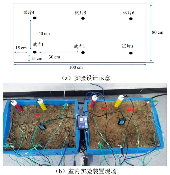 實(shí)驗設計土壤箱尺寸為1 m×0.8 m(圖 1),依次在鹽堿地和非鹽堿地兩種土樣中布設6個(gè)6.5 cm2的試片,埋設時(shí)間8個(gè)月,自2024年3月30日至2024年11月30日。屆時(shí)取出試片在實(shí)驗室進(jìn)行腐蝕失重分析。