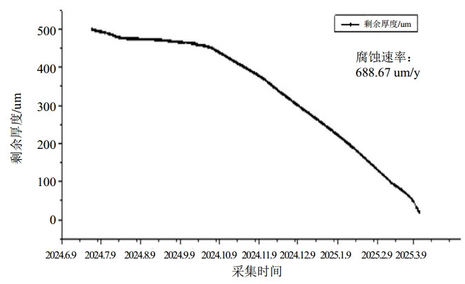 圖 6 鹽堿地現場(chǎng)ER腐蝕探頭剩余壁厚變化趨勢