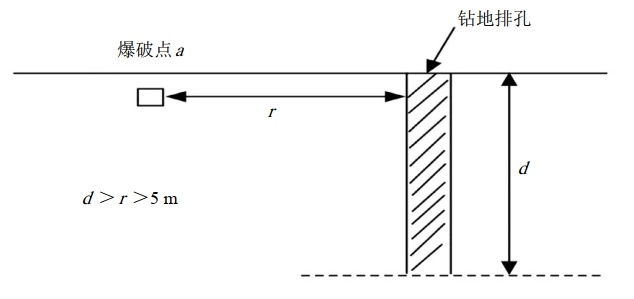 (2)實(shí)施方法。在距離爆破點(diǎn)一定半徑的軌跡上,按照一定間距和密度對地打孔,以及變化半徑多層次錯位打孔,類(lèi)似于豎井作業(yè)過(guò)程中的圍幕注漿法。根據現場(chǎng)條件和保護要求,可以采取全環(huán)打孔或局部方向弧線(xiàn)打孔(圖 1)。