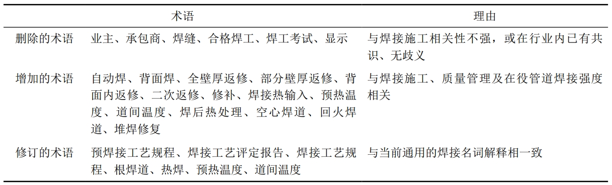 2023版增加、修訂了與返修焊接、焊接工藝文件相關(guān)的術(shù)語(yǔ)名詞,如表 2所示。