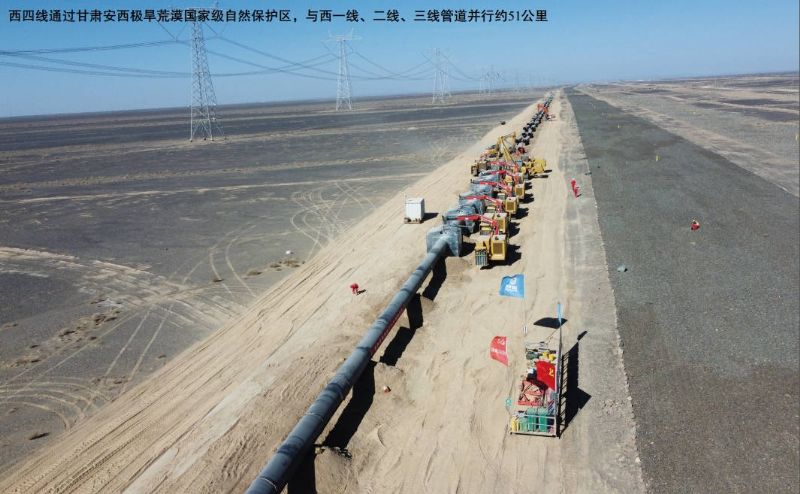 其中,過(guò)境甘肅省的西氣東輸工程,是世界級管道工程,由已經(jīng)投產(chǎn)的一線(xiàn)(新疆—上海)、二線(xiàn)(中亞—香港)和正在建設的三線(xiàn)(中亞—福建、廣東)、四線(xiàn)(中亞—中衛)組成,管道總長(cháng)度超過(guò)2萬(wàn)公里,承擔了全國天然氣輸送量的50%。這4條線(xiàn)全部經(jīng)過(guò)甘肅省河西走廊,敷設總長(cháng)度4000多公里。截至2024年底,西氣東輸工程累計輸送天然氣9600億立方米,其中輸往長(cháng)三角地區和珠三角地區5000億立方米,給4億多人口送去清潔能源,為保障能源供應、建設美麗中國作出了應有貢獻;全省有52個(gè)縣(區、市)通了天然氣,廣大人民群眾享受了管道建設帶來(lái)的紅利,生活環(huán)境質(zhì)量也得到明顯改善。此外,鄯善—蘭州原油管道、蘭州—成都—重慶成品油管道、蘭州—鄭州—長(cháng)沙成品油管道等長(cháng)輸干線(xiàn)管道的建設,徹底解決了長(cháng)期困擾甘肅省利稅大戶(hù)蘭州石化公司原料輸入和產(chǎn)品外運難題,有力保障了企業(yè)正常生產(chǎn)經(jīng)營(yíng),有效助推了國家能源戰略的落地實(shí)施。