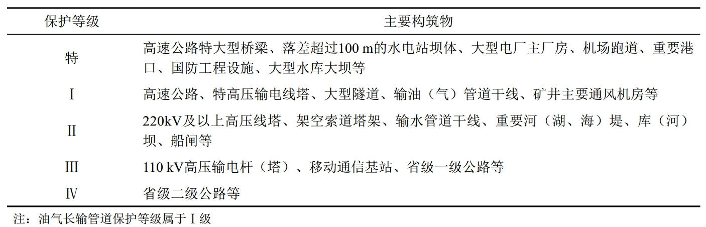 表 2 構筑物各保護等級的圍護帶寬度