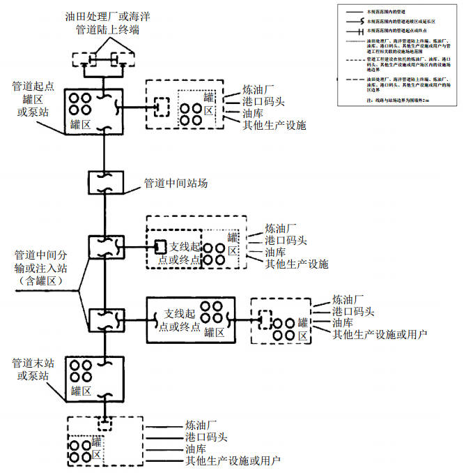 圖 1 規定了輸油管道工程與上下游相關(guān)企業(yè)及設施的界面劃分